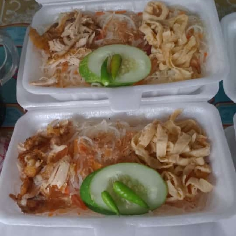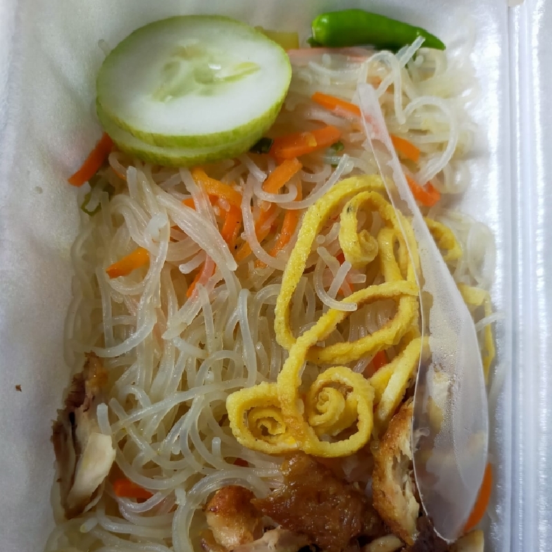 Bihun dengan bumbu rempah alami, bertabur toping ayam dan telur suwir